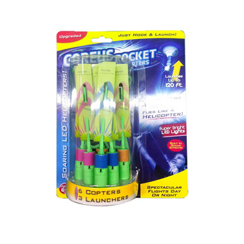 LINGS HOT LED Light-Up Hubschrauber Spielset 6 Copters & 3 Sling shots Outdoor Toy Rocket mit Sound